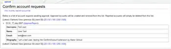 ConfirmAccount.phpfile. That is probably a good place to add the call towfLoadExtension() - Please also note the known issues, because they may affect your wiki.
