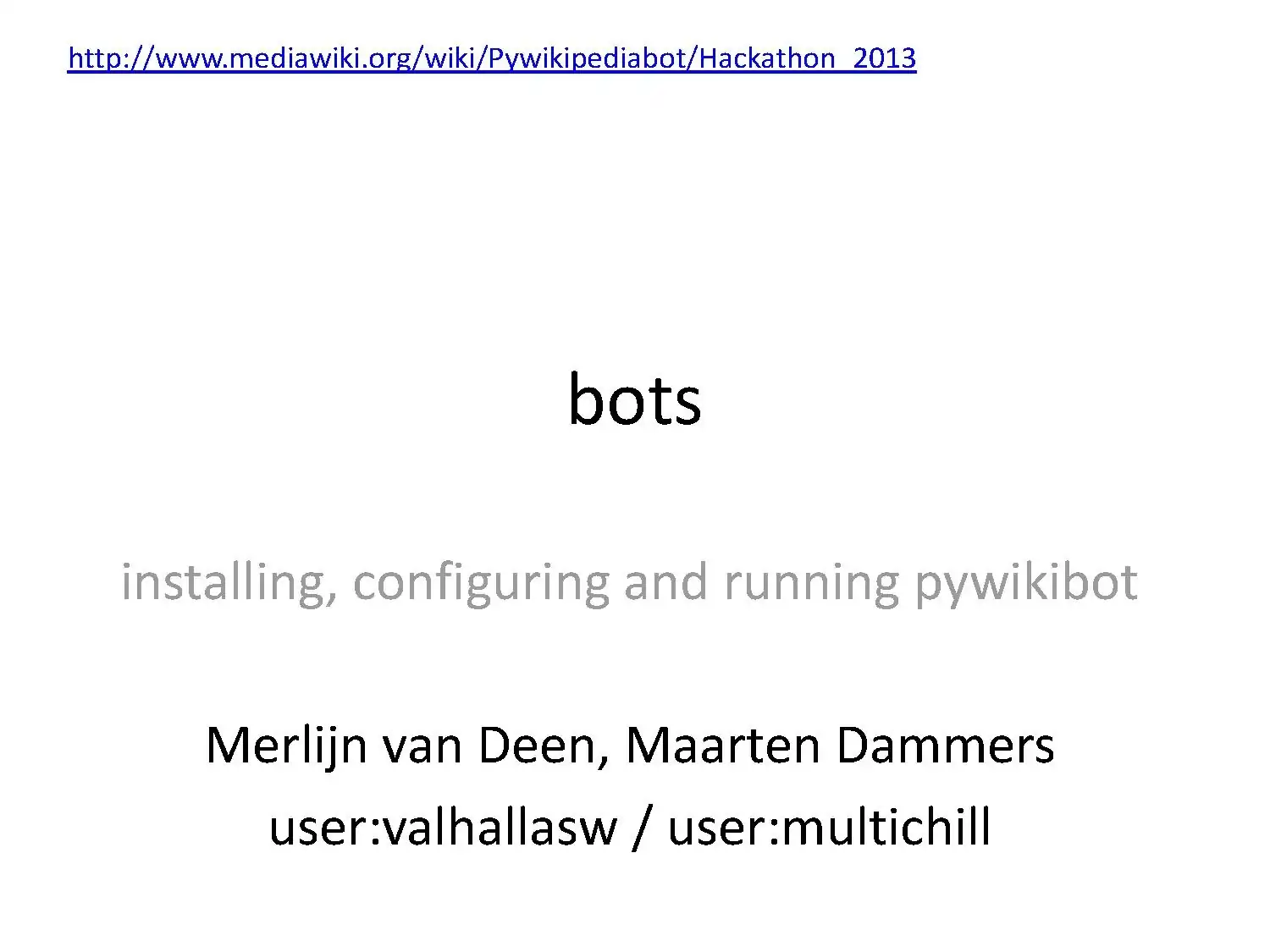 - Download pywikipedia: http://tools.wmflabs.org/pywikibot/core.zip