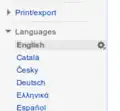 - Option B: Integrated in the left menu bar. This option integrates the language setting as part of the inter-language links. The rational is to provide language-related functionality in a single point to avoid confusion. Inter-language links have been extended to indicate the current language, where settings can be changed. This solution probably requires the user to have certain familiarity with the placement of inter-language links.