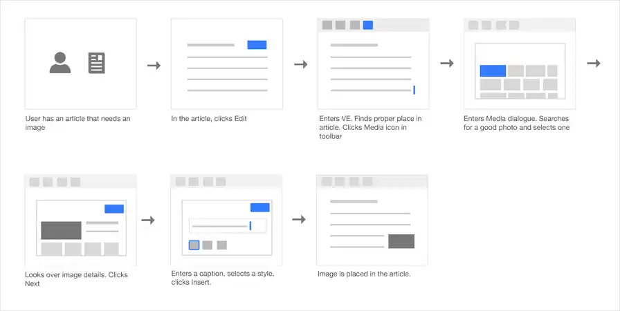 Allow users to create well-illustrated pages by helping them to quickly and easily find an image, describe it, and place it appropriately on the page.